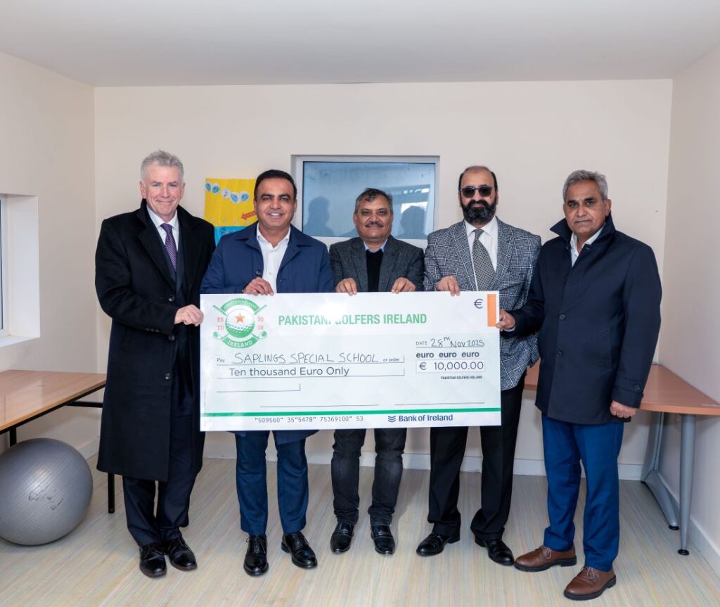Thanking Pakistani Golfers Ireland on behalf of Saplings Special School, Lesley Brant added: “On behalf of our school community, I extend my sincere gratitude to Pakistani Golfers Ireland for their generosity. The funds raised through this year’s Pakistan Golf Cup will have a lasting and positive impact on our students, opening new opportunities for communication, learning and personal growth.”