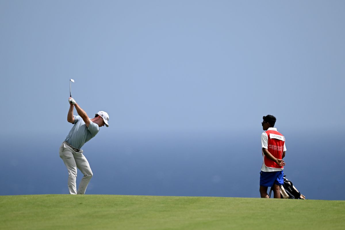 “The wind was howling and we had three rain squalls come through,” he said. “I was really happy to be under par today. But I’m also starting to learn this course.”