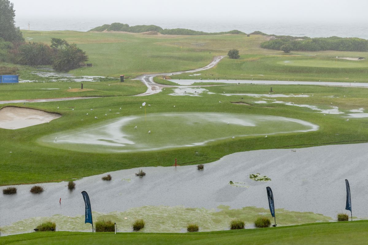 The first round at Wollongong Golf Club got underway on Thursday morning before the horn sounded at 12:55 local time following heavy rainfall in New South Wales.