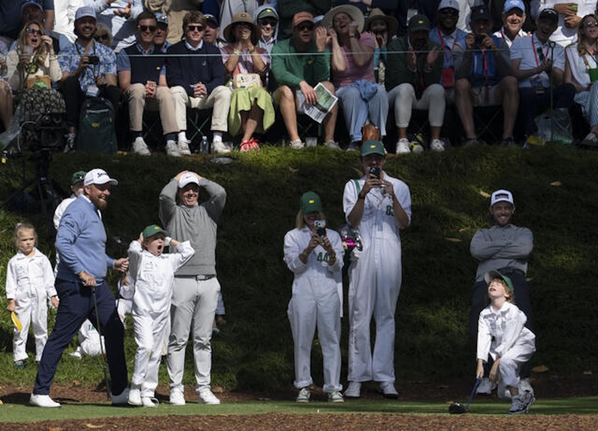 It’s hilarious how Frankie’s bid to hit the 9th has become a thing and a central part of Masters week. The ridge above the tee box was heaving with people here to see an historic moment. Play on that hole slowed up as players let their kids and caddies have a crack at the green. Brian Harman’s kids held up the show, not by slow play, just he has four of them…