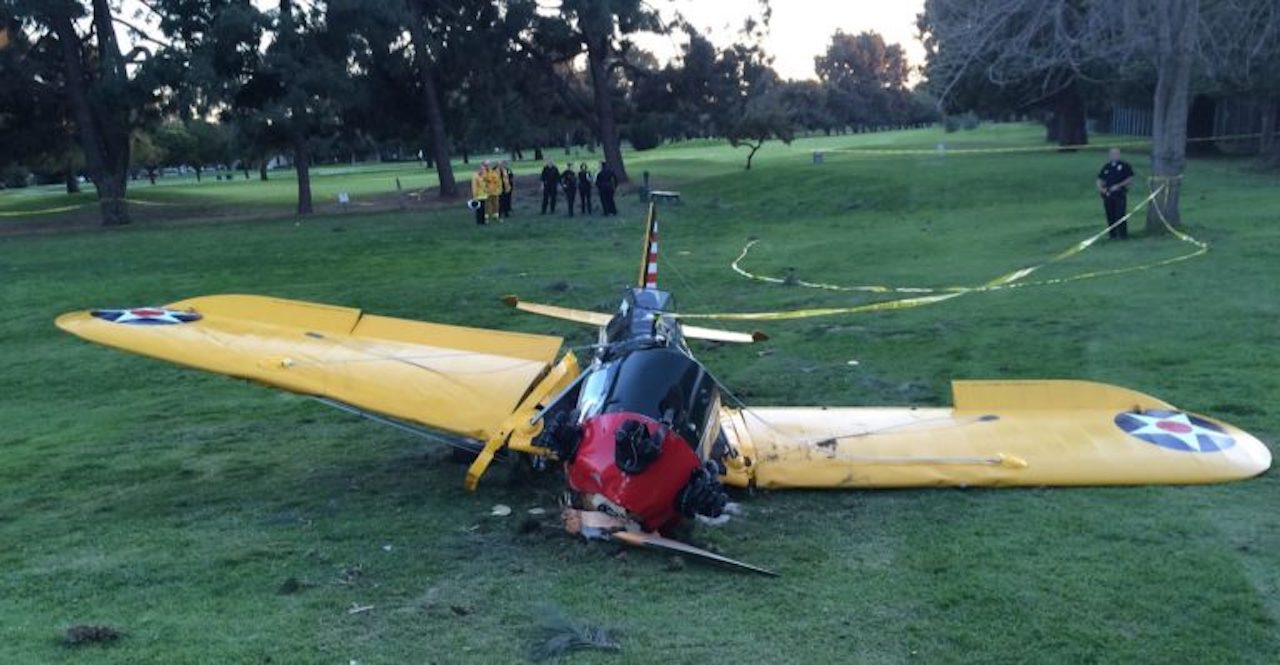 Ford was flying his bright-yellow vintage 1942 Ryan Aeornautical single-engine plane when it developed engine trouble on his way back to closeby Santa Monica Airport, and honestly just a good drive away. Despite some under-carriage damage, he safely landed the plane that came to rest between two tees boxes at the par three 8th hole. The plane did clip a tree and with Ford widely praised in not only saving his own life but it could have crashed into houses or roadways.