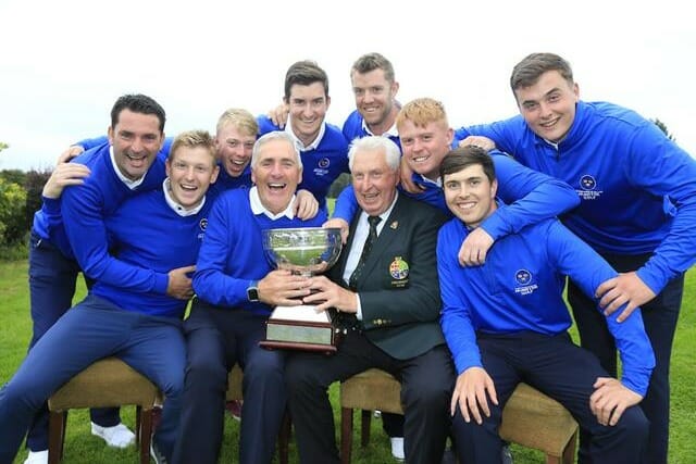 After Sugrue came Eanna Griffin, again sealing it on 18 against Robbie Cannon, while Peter O’Keeffe had by then beaten Jonathan Yates 3&2. Now attention turned to the back order. John Hickey was rock solid in the anchor leg, defeating Eugene Smith on 16, just before Lenehan struck.