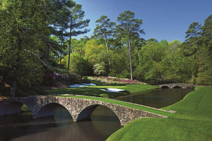 This is the water fronting the Par 3 12th green at Augusta National – it also flows behind the 11th green and in front of the 13th tee. The famous creek is named after an Irishman, John Rae, who built a grist mill on the banks of the creek in 1765.