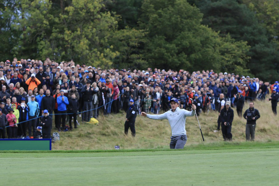 Dunne holing out on 18. Image by Thos Caffrey Golffile.ie