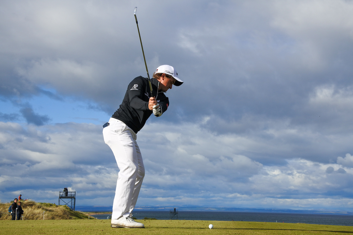 The Greystone’s golfer managed to save par after an errant drive left down his final hole at Kingsbarns Links in a round of 70 to move to third place on 11-under par.