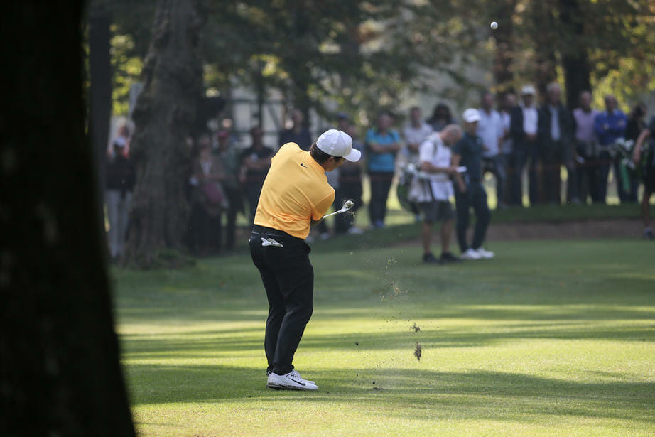 Molinari, wearing a bright yellow shirt, clearly drew strength from the ‘Tifosi’ with seven birdies over his opening dozen holes on the course the backs onto the Autodromo Nazionale Monza where Brit Lewis Hamilton five weeks ago was first past the chequered flag.