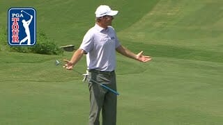 Snedeker’s ball to an unseen green severely damaged the hole in holing-out from 176 yards and not realising he had holed the shot until he arrived at the green.