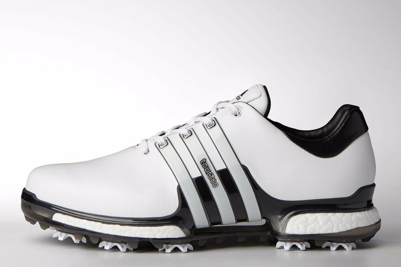 An upgraded outsole top plate in the new TOUR360 sits above the boost midsole, allowing the shoe to accommodate natural foot flection that occurs during the golf swing. Based on swing study testing and analysis, the plate wraps higher on the lateral side of the foot, but was designed to be soft enough to still provide lateral and medial stability as golfers transition their power in the follow through of the swing.
