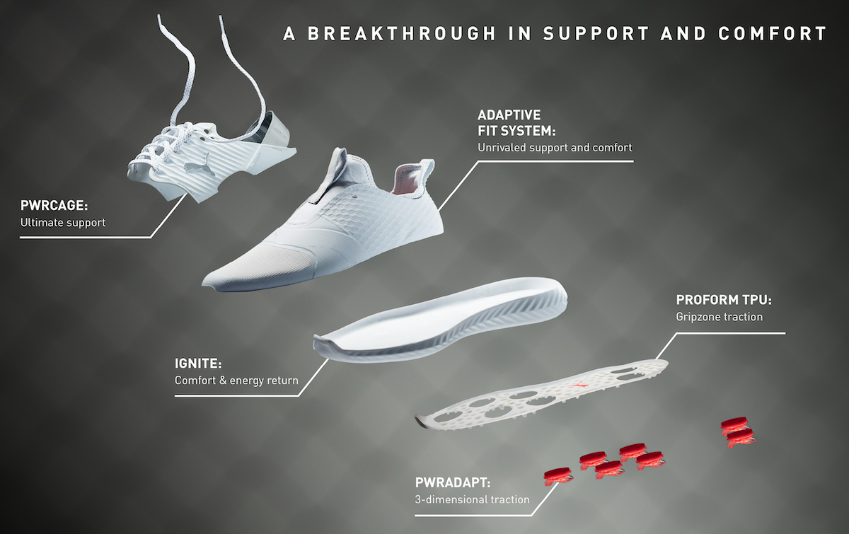 The IGNITE PWRADAPT CAGED collection is available in the golfer’s choice of four stylish color ways (Gray Violet/Silver/White, Black/Silver/Black, Quiet Shade/Silver/Black, White/Silver/Peacoat). Available in sizes 7-12, the IGNITE PWRADAPT CAGED will feature a retail price of €150 and be available through retail and online from Feb.