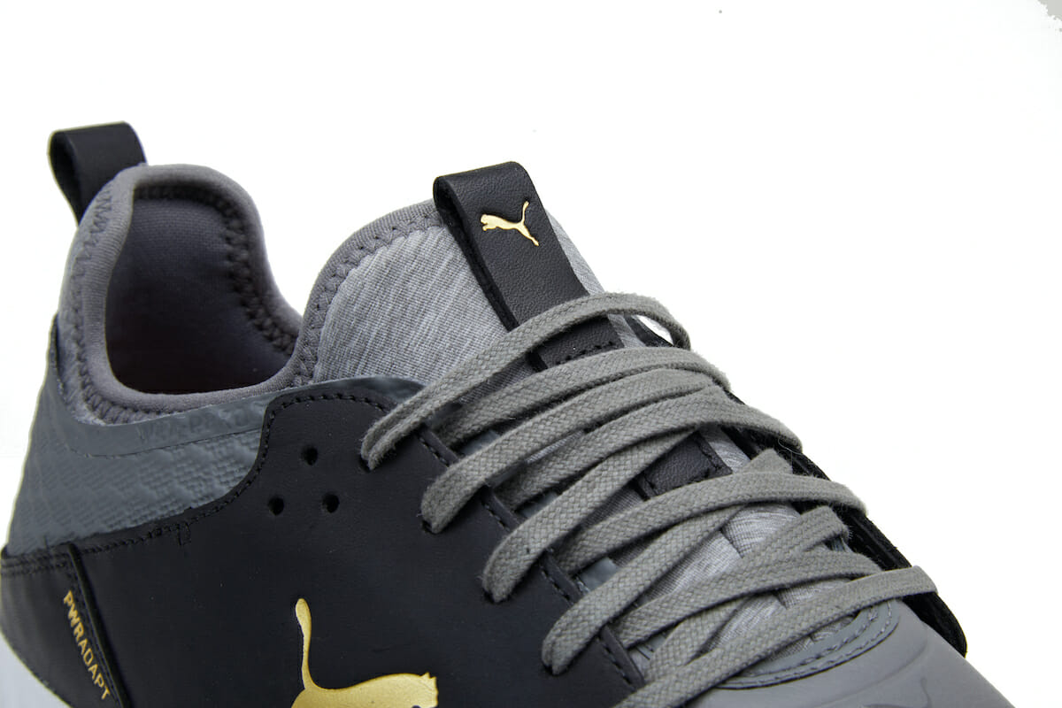 that wraps around the medial and lateral sides of the shoe providing unmatched stability throughout the swing and an elevated aesthetic. In addition, the layered Adaptive Fit System provides 360-degree support through the internal bootie, while the forefoot is also made with a supple full-grain leather that gives a clean look, and 1-year waterproof performance. The full-length Ignite foam cushioning and Pwradapt Technology sole provide responsive comfort and 3-dimensional traction that adapts to the way a golfer moves.