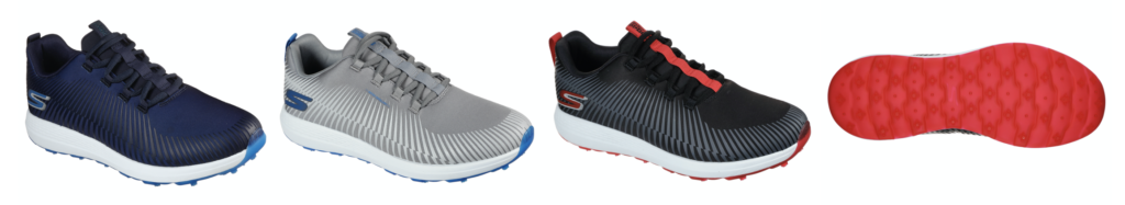 One of the smartest looking shoes in the range the Skechers GO GOLF Max Bolt has a 3D printed breathable textile upper and durable, spikeless TPU outsole. In shoe comfort comes from Skechers GOGA MAX Technology insole for high rebound cushioning and Skechers ULTRA FLIGHT, ultra-lightweight responsive cushioning. Water repellent and pull tabs for easy on off the Skechers GO GOLF Max Bolt shoe is available in Grey/blue, navy/blue and black/red.