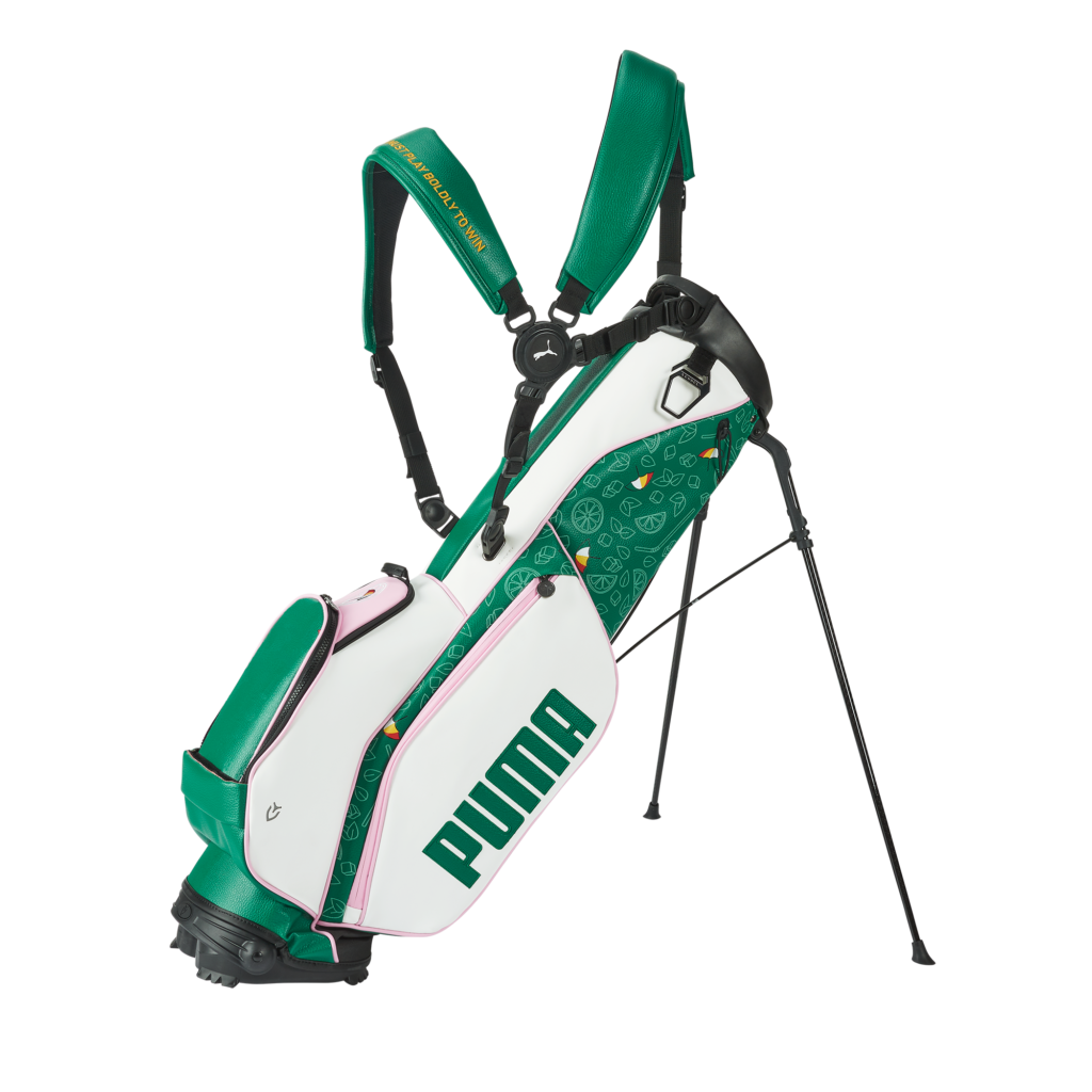 • PUMA x Vessel Waste Management VLX Stand Bags – Tour, Stand and VLX stand (€699) features the iconic Umbrella logo with design elements inspired by Mr. Palmer’s beverage of choice, in a green and white colorway with hits of pale pink.