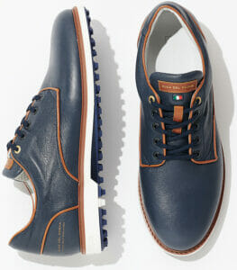 The Kubaneo (€199.00) is a modern take on the classic Kuba model and delivers a bold look both on and off the course. Crafted from soft Italian Nappa leather, the fully waterproof shoe incorporates an Aqua stop lining and ARNEFLEX® insert sole, plus a heel support and Airplay IV sole made from recycled materials for a comfortable fit.