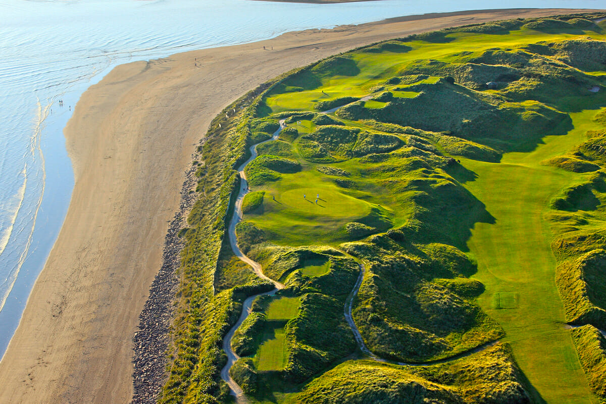 A magical par three where it’s the green or it’s disaster. The tee shot plays over deep, coarse rough to a green perched on a ledge below. It looks perfect and the surroundings are beautiful… as they are everywhere on this Palmer/Seay-designed links. Tralee has many remarkable holes with much of the back nine utterly breathtaking.