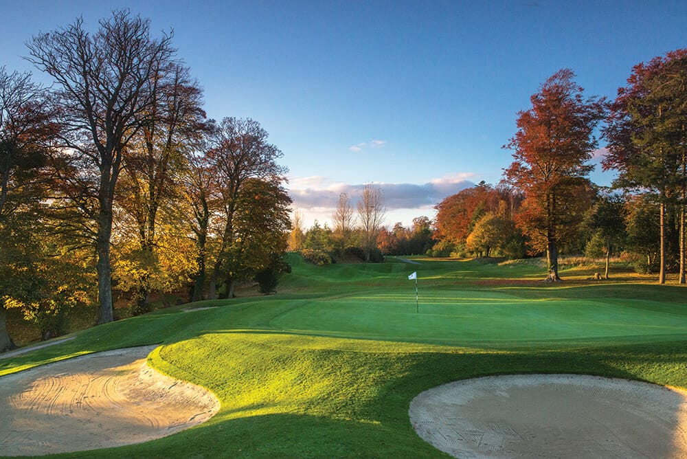 6. THE GOLF COURSE AT ADARE MANOR www.adaremanor.com Now easily recognised as Ireland’s top parkland – sitting in exalted company with some of the world’s best links courses – Adare continues to polish the edges of its golfing masterpiece. The attention to detail lavished on the course in anticipation of some major events has been building for some time (the twice-postponed JP McManus Pro-Am was held finally in 2022) and the efforts to maintain such gloriously perfect playing surfaces are relentless and admirable. There is no doubt in anyone’s mind that the course won the praise and admiration of the world’s top golfers… and golfing media… at the Pro-Am. Imagine what it will be like after the 2027 Ryder Cup. Discussions about Adare’s course condition tend to be of the breathless variety, with sub-air technology raising pulses… but a course can’t survive on conditioning alone. There needs to be more and Tom Fazio’s re-design is something truly remarkable. It is hypnotic in its rhythm with raised greens and vast aprons of run-offs catching the eye – and your ball – time and again. They are dazzling targets. The bunkering is bright and unmissable, framing fairway corridors and threatening constantly around greens. It may be easier to be in a bunker than to run the gauntlet of those aprons which can sweep your ball 30 yards away. And yet its playability is one of Adare’s great strengths. There is no rough to speak of and with thousands of trees removed, you should always be able to access greens. (DOWN 1)