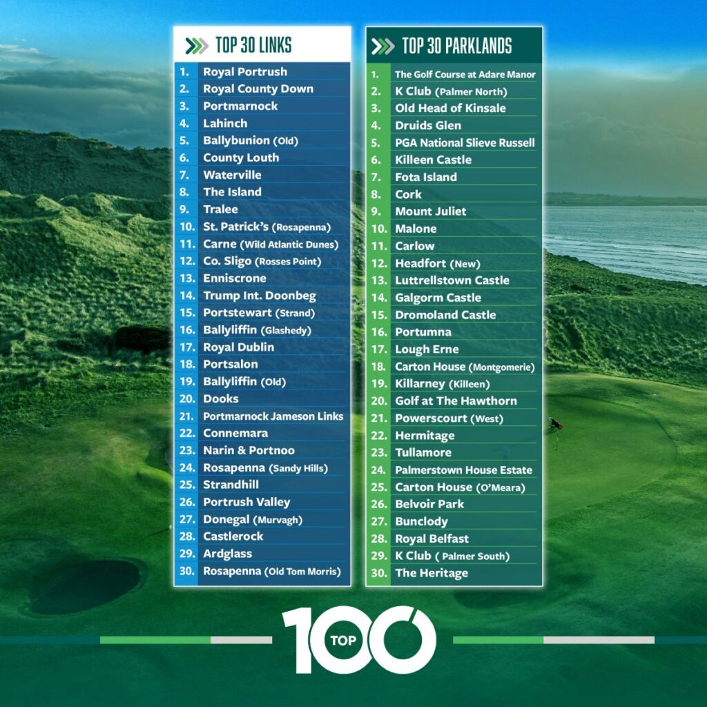 Ireland has some of the very best courses in world and, unlike many countries, it’s possible to play them all! So, whether you’re a links or parkland fan, a purist or someone who just likes golf regardless of the terrain, this Top 100 list is for you!
